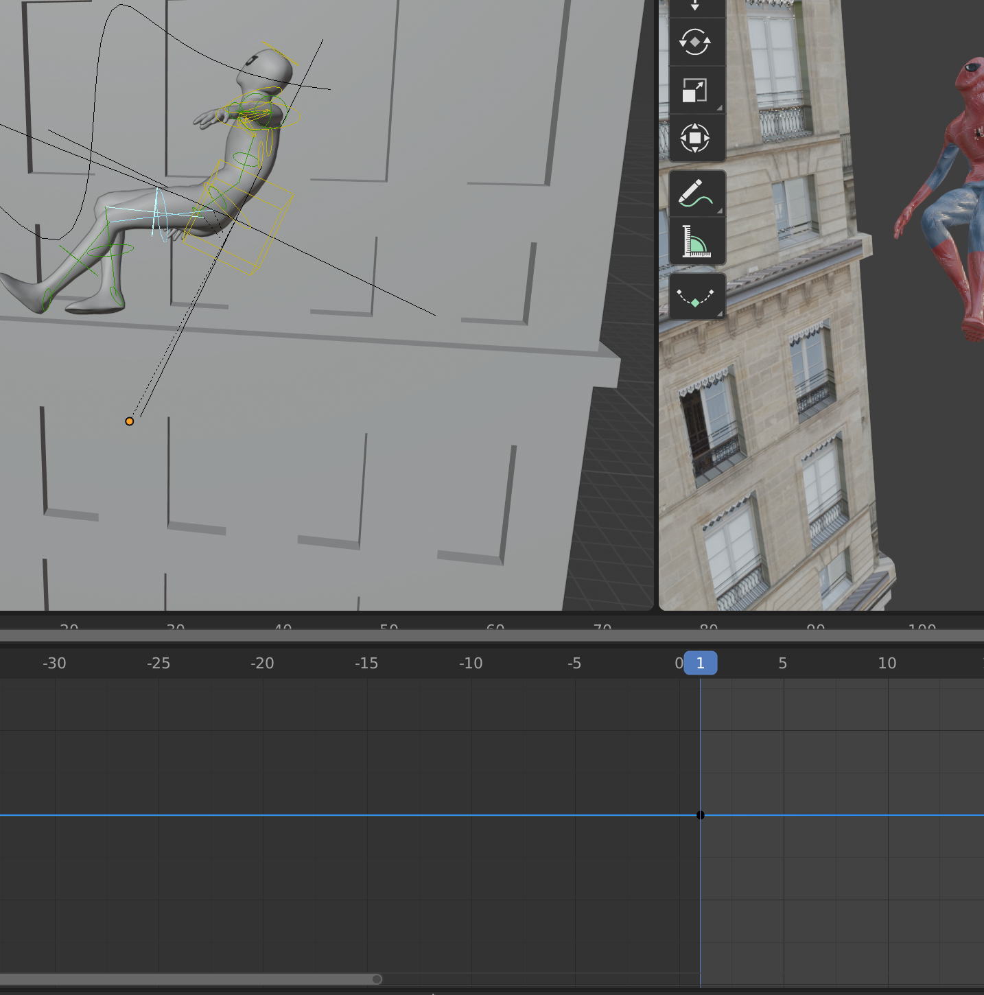 I started with the initial momentum movement the legs would be in as the scene starts and he is swinging around the building.